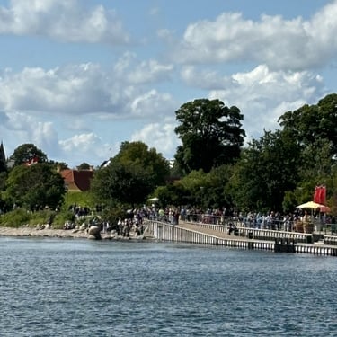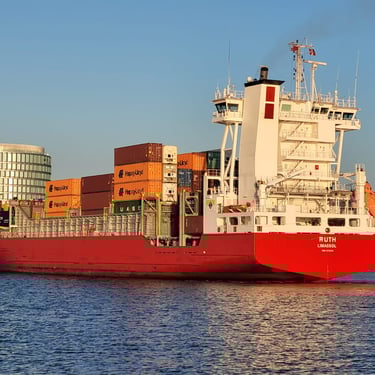 La remontée du chenal est l'occasion de saluer la "Petite Sirène" et croiser de prêt de beau cargos