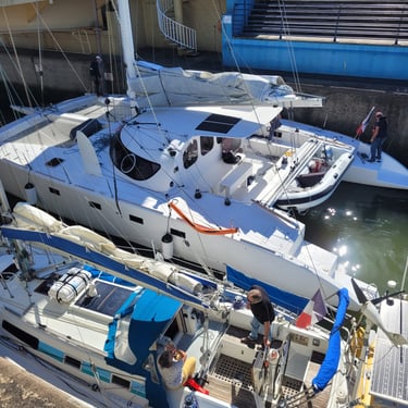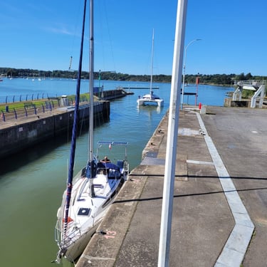 Changement complet d'équipage : Bernard et Daniel me rejoignent. Nous passons 3 jours à tenter de résoudre nos problèmes électriques tout en laissant passer un nouveau coup de vent avant de reprendre la mer direction Arzal.