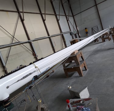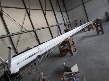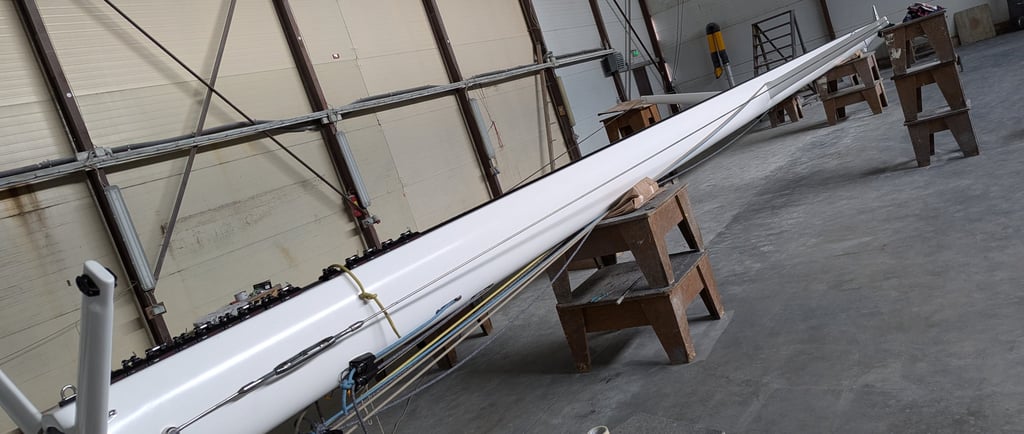 Le mât est prêt pour la mise à l'eau et le mâtage